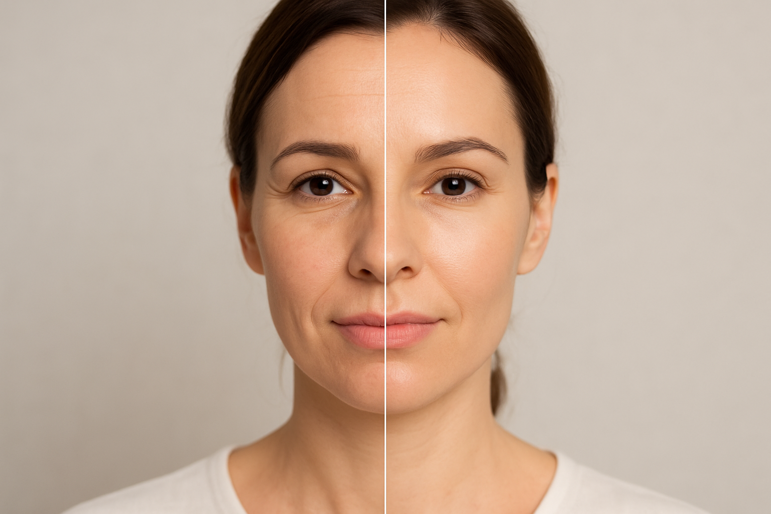 Die Haut altert durch ein Zusammenspiel innerer und äußerer Einflüsse. Bereits ab Mitte 20 verringert sich die Produktion von Kollagen, Elastin und Hyaluronsäure – den Schlüsselsubstanzen für Festigkeit, Elastizität und Feuchtigkeit. Parallel verlangsamt sich die Zellerneuerung.