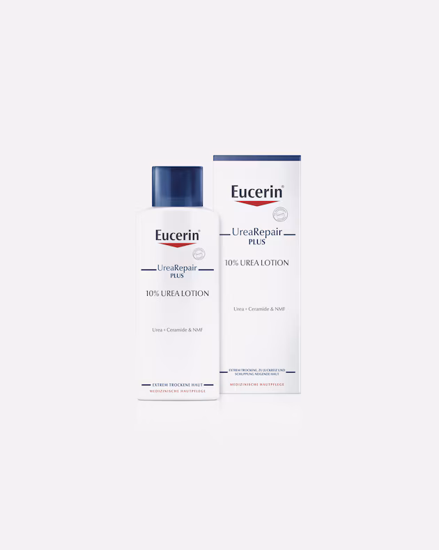 Eucerin UreaRepair PLUS 10% Urea Lotion – lindert Trockenheit und Spannungsgefühle, sehr gut bei schuppiger Haut.🛒 Direkt zum Produkt