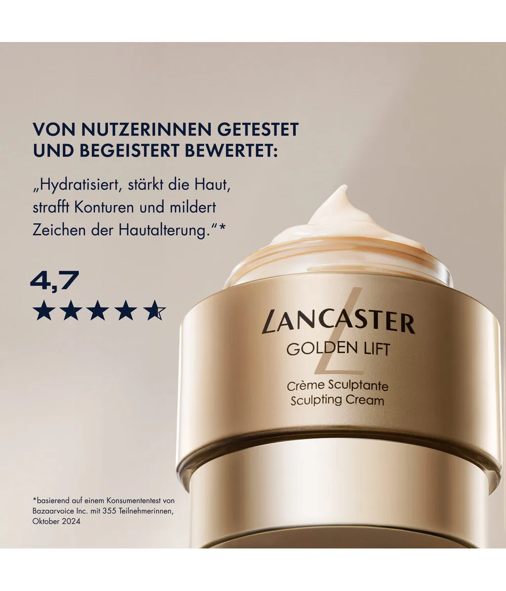 Unser November-Highlight: Golden Lift Sculpting Cream von Lancaster – festere Haut, definierteres Profil, verwöhnender Luxus.